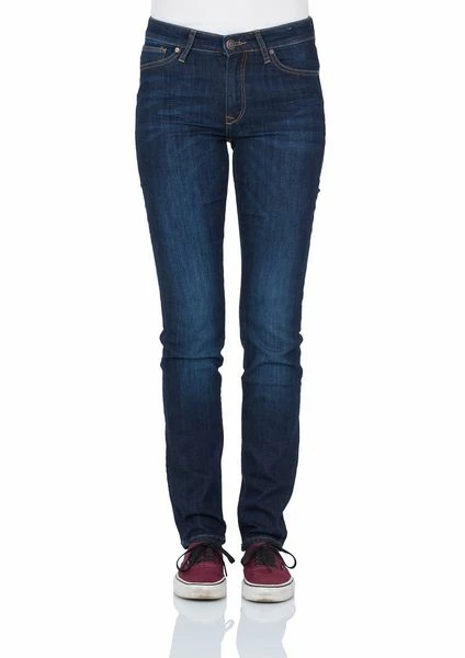 Cross Jeans Damen Jeans Anya Slim Fit Hose Denim Stretch Dark Blue Used Blau