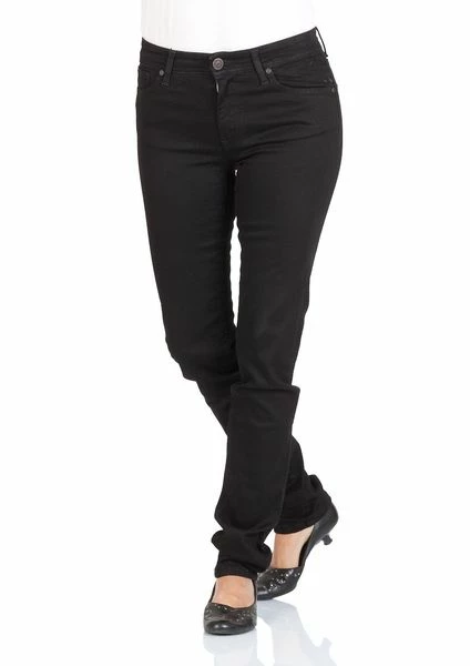 Keyfacts: Damen frauen modisch klassisch trendig zeitlos lang arbeit freizeit bequem basic reißverschluss zip maschinenwäsche hohe bundhöhe enger schnitt größen 5-Pocket Style highlight outfit robust jeanstrend trend-jeans damenjeans original cotton denimCross Jeans Damen Jeans "Anya" Slim, Schwarz, uni Die Slim-Jeans Cross Jeans "Anya" mit Reißverschluss macht Ihr Leben einfach schöner. Denn die Jeans ist die bewährte Form lässiger und gleichzeitig überall tragbarer Kleidung. Frauen möchten vor allem eines: immer gut aussehen und gleichzeitig frei sein. Die Kleidung sollte daher bequem sein und parallel die natürliche Ausstrahlung einer Frau unterstützen. Eine hohe Leibhöhe hilft Ihnen, Problemzonen zu verstecken und, wenn Sie etwas kleiner sind, größer auszusehen. Die Jeans gibt Ihnen ein angenehmes Tragegefühl und lässt sich mit einem Reißverschluss verschließen. Die Materialzusammensetzung der colored Jeans besteht aus 92% Baumwolle, 6% Polyester und 2% Elasthan. Das komprimiert gefärbte Garn sorgt für eine zuverlässige Farbechtheit. Ob bei der Arbeit oder nach Feierabend – mit dem Modell "Anya" im Slim-Fit sehen Sie einfach perfekt aus. Für alle, die Wert auf gutes Aussehen und bequeme Mode legen: Mit der Cross Jeans Damen-Slim-Jeans "Anya" mit hoher Leibhöhe bekommen Sie die ideale Grundlage für ein tolles Outfit!